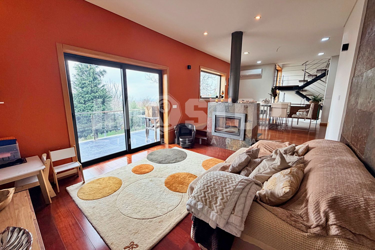 Apresento-lhe esta moradia T4 de arquitetura contemporânea, onde o conforto, a funcionalidade e uma vista verdadeiramente deslumbrante se unem para proporcionar uma qualidade de vida superior. Distribuída por 3 pisos, destaca-se pelas áreas generosas, excelente organização dos espaços e acabamentos de qualidade — ideal para quem procura viver com tranquilidade, espaço e luz natural. No exterior, encontra um jardim amplo, perfeito para momentos em família ou lazer, sempre acompanhado por uma vista aberta que faz a diferença no dia a dia. Piso -1 Garagem para 2 viaturas Lavandaria independente Espaço amplo atualmente adaptado a ginásio (equipamentos não incluídos) Piso 0 (Zona Social) - Cozinha equipada - Sala de estar e jantar com recuperador de calor de duas frentes, criando um ambiente acolhedor e sofisticado - 1 quarto (ideal para escritório) - Casa de banho revestida a pedra natural Piso 1 (Zona Privativa) - 2 quartos com roupeiros embutidos - 1 suite com closet e casa de banho privativa ebanheira hidromassagem - Casa de banho completa de apoio aos restantes quartos Ar condicionado em todas as divisões Bomba de calor com painéis solares para aquecimento de águas Estores elétricos Varandas em todas as divisões, garantindo excelente luminosidade Exposição solar excelente Mais do que uma casa encontra uma moradia pensada para quem valoriza espaço, conforto e uma envolvência tranquila — sem abdicar de modernidade e eficiência energética. Marque já a sua visita. IMO/STOP – A paragem, para quem quer casa.